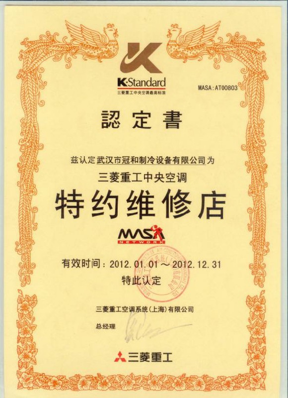 2012年度三菱重工中央空调 特约维修店