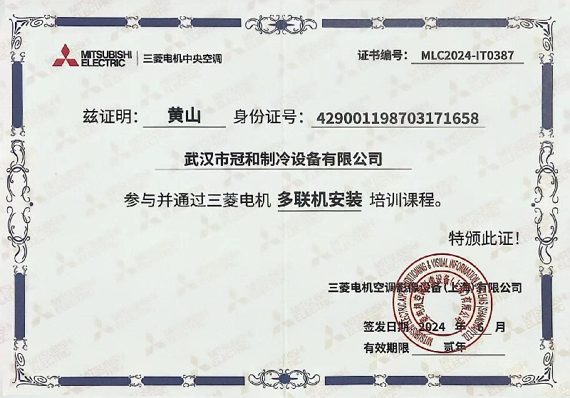 空调安装员工证书